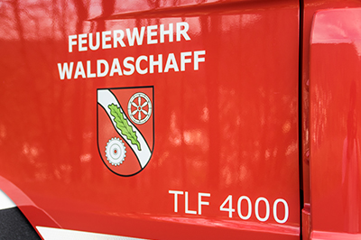 Das Fahrzeug wurde im neuen Design der Feuerwehr Waldaschaff beklebt und bildet damit eine Verknüpfung zum akutellen Erscheinungsbild der Gemeinde Waldaschaff.