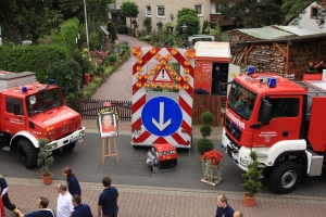 Den Höhepunkt dieser Jahre stellte zweifelsohne das an der Kerb 1996 stattfindende Fest anlässlich der Einweihung gleich dreier Gerätschaften dar. Neben einem neuen Mehrzweckfahrzeug als Ersatzbeschaffung für das alte, das auf einer Einsatzfahrt in einen Unfall verwickelt wurde und Totalschaden erlitt, weihte unser Pfarrer ein neues landkreiseigenes Lichtmastfahrzeug ein, welches das knapp 20 Jahre alte eigene Lichtmastfahrzeug ersetzte. Darüber hinaus konnten wir am gleichen Tag einen, nach langem Ringen mit dem Landkreis, endlich zur Verfügung gestellten Verkehrssicherungsanhänger einweihen. Als eine wichtige Beschaffung der letzten Jahre wäre auch das von der Berufsfeuerwehr München erworbene Tro TLF 16 zu erwähnen. Dieses Einsatzfahrzeug ergänzt unseren Fuhrpark, insbesondere bei Einsätzen auf der Autobahn, optimal.