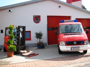 Bereits im Jahre 1993 war das bestehende Gerätehaus mit seinen vier Garagen zu klein geworden. Aus Platzmangel musste das Mehrzweckfahrzeug zeitweise in der Scheune beim Kameraden „Hüller“ untergebracht werden. In dieser Zeit entschloss sich die Gemeinde das bestehende Gerätehaus zu erweitern. Im September 1994 begann man mit den Bauarbeiten einer zweiten Fahrzeughalle. In den Zeiten immer knapper werdender finanzieller Mittel der öffentlichen Hand entschlossen sich die Wehrmänner mit Unterstützung einiger Fördermitglieder die Arbeiten in Eigenleistung auszuführen. Bereits am 17. Dezember 1994 konnte das Richtfest gefeiert werden und bald darauf standen schon die Fahrzeuge in der neuen Halle. In den nachfolgenden Jahren stand die Renovierung des bestehenden Gerätehauses im Vordergrund der Bautätigkeit. So wurden drei Neue Tore eingebaut und die beiden Büros erhielten ein neues Gesicht. Dies darf aber nicht darüber hinwegtäuschen, dass die Motivation in Bezug auf den Arbeitsdienst am Feuerwehrhaus in letzter Zeit immer mehr nachließ. Deshalb entschloss sich die Gemeinde auf Drängen der Wehrführung den dringend notwendigen rückwärtigen Anbau von einer Baufirma ausführen zu lassen. Der Anbau beinhaltete die Umkleide- und Hygieneräume, sowie die Werkstatt. Der am unserem 125jährigen Jubiläumsfest eingeweihten Gerätewagen-Logistik konnte so auch im Feuerwehrhaus untergestellt werden.